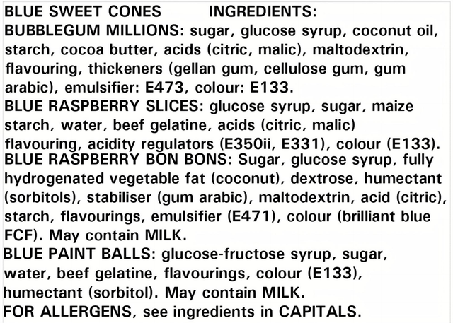 All Sweet Cones come with ingredients and allergens labels attached, see pictures for detailed information.
