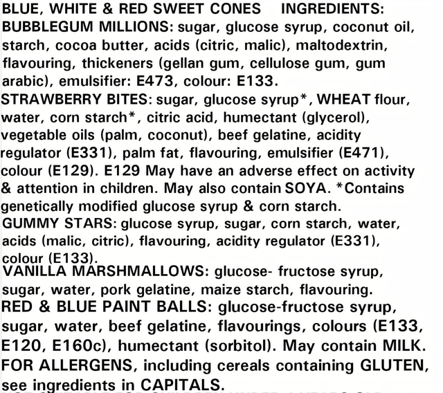 All Sweet Cones come with ingredients and allergens labels attached, see pictures for detailed information.
