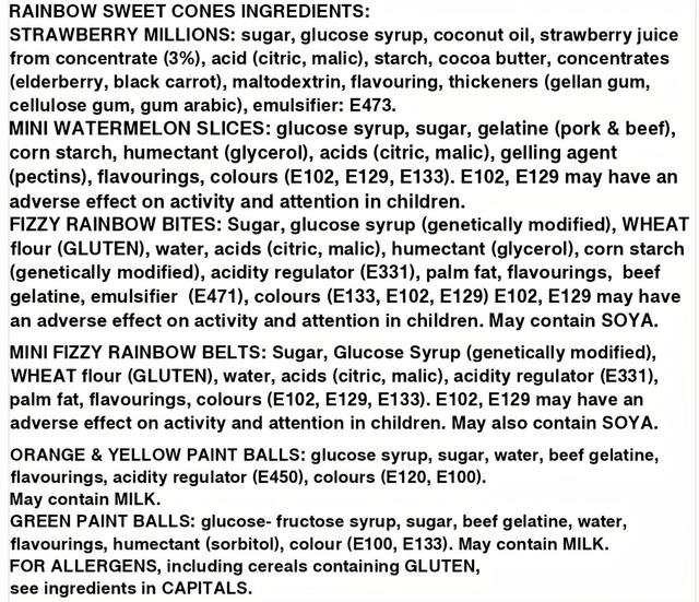 All Sweet Cones come with ingredients and allergens labels attached, see pictures for detailed information.