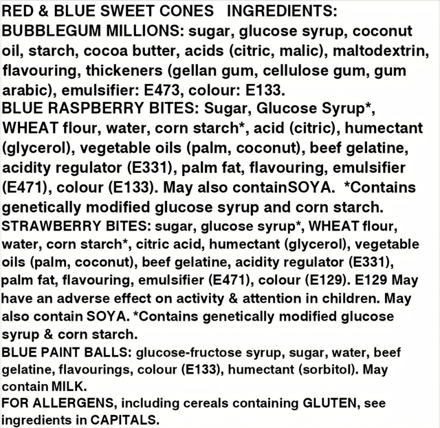 All Sweet Cones come with ingredients and allergens labels attached, see pictures for detailed information.